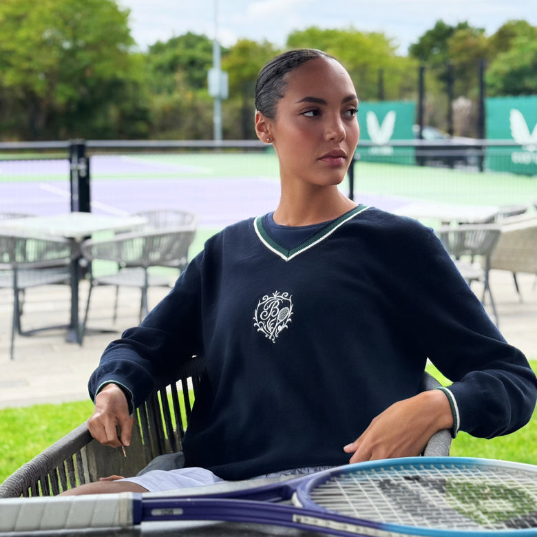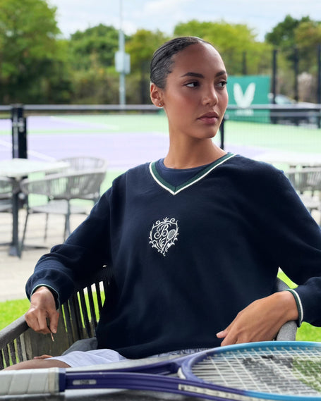 Crafted from 100% organic cotton, it delivers warmth without bulk. Ideal for chilly match days, layering between sets, or effortless everyday wear.