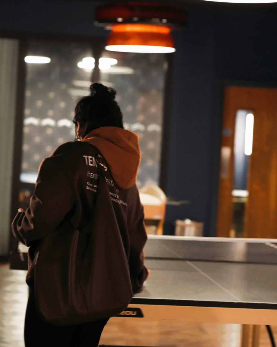 Made from premium heavyweight fleece with dropped shoulders and voluminous sleeves, it offers sculptural comfort and a relaxed silhouette. Designed for pre-match focus, post-match ease, and everyday off-court style.