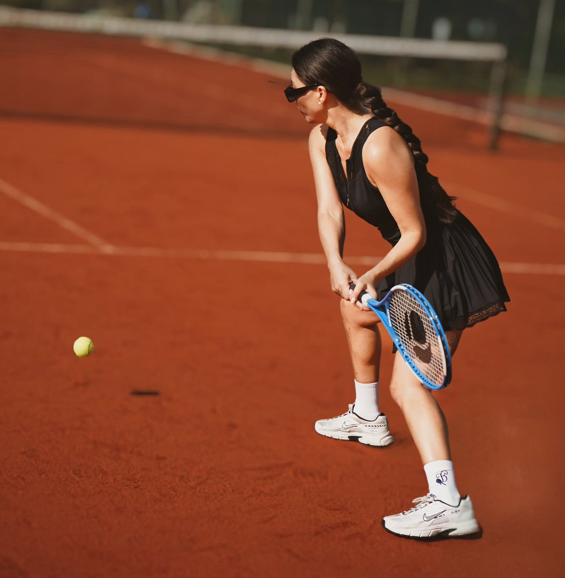 The Caroline Dress was designed for the modern woman whose schedule never slows down—yet who still finds time to step onto the court and feel her most beautiful. Named after my mother, this piece carries the spirit of elegance, strength, and quiet sophistication.