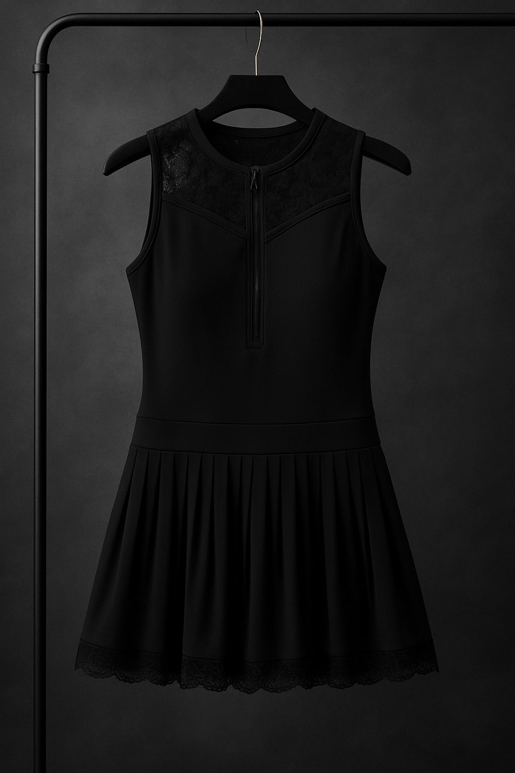 Crafted with delicate lace panelling and a flowing pleated skirt, The Caroline Dress is as much a statement of femininity as it is of performance. Its fitted bodice offers support and confidence with every serve, while the lace detailing softens the silhouette—reminding you that power and delicacy can exist in harmony.